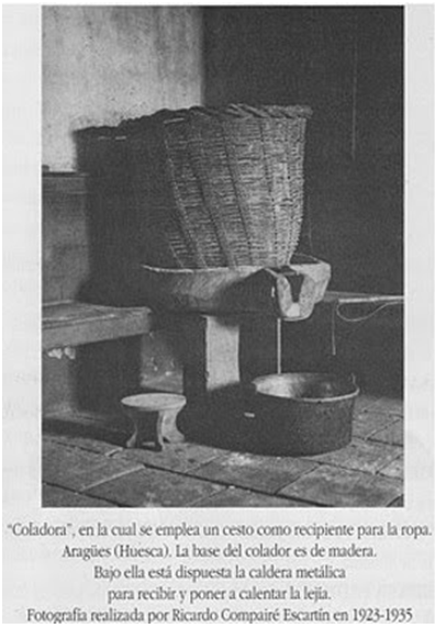 Nos vamos a inspirar en este párrafo para vislumbrar una de las faenas domesticas más dura que realizaban las mujeres—hacer la colada— según la cantidad de ropa el proceso podía durar hasta tres días. Uno para mojar y enjabonar la ropa, otro para calentar el agua y pasar la colada de agua y ceniza y el tercero para el aclarado, y al final el planchado